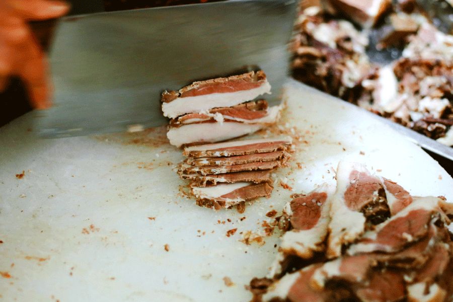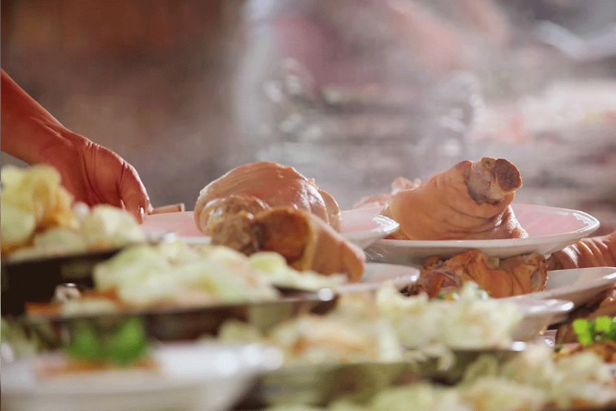 冬夜里,當(dāng)他聽到深巷賣羊頭肉小販的吆喝聲,會立即從被窩里爬出來,然后等小販在門口昏暗的油燈下給他切好,再重新鉆進被窩,在枕上一片一片把羊頭肉放進嘴里,一解饞癮;