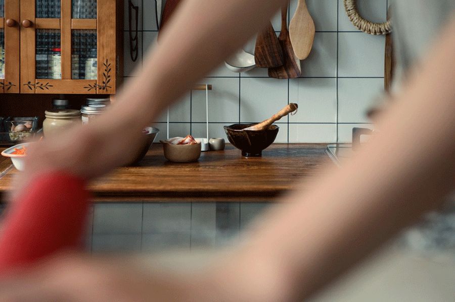他與妻子也格外恩愛,他們在廚房調(diào)和著柴米油鹽,在案板上細(xì)細(xì)切碎生活疾苦,在湯鍋中耐心熬煮出幸福的滋味。