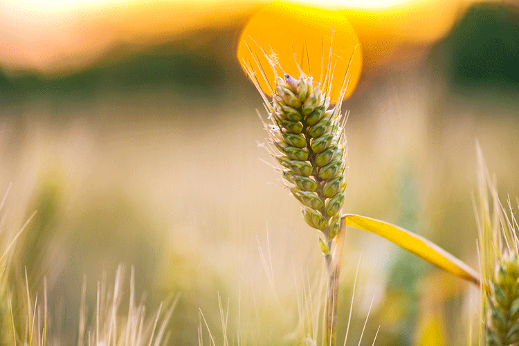 六月,陽光照在麥穗上。
