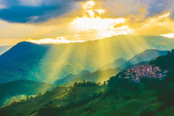 六月,陽光灑在云層上。