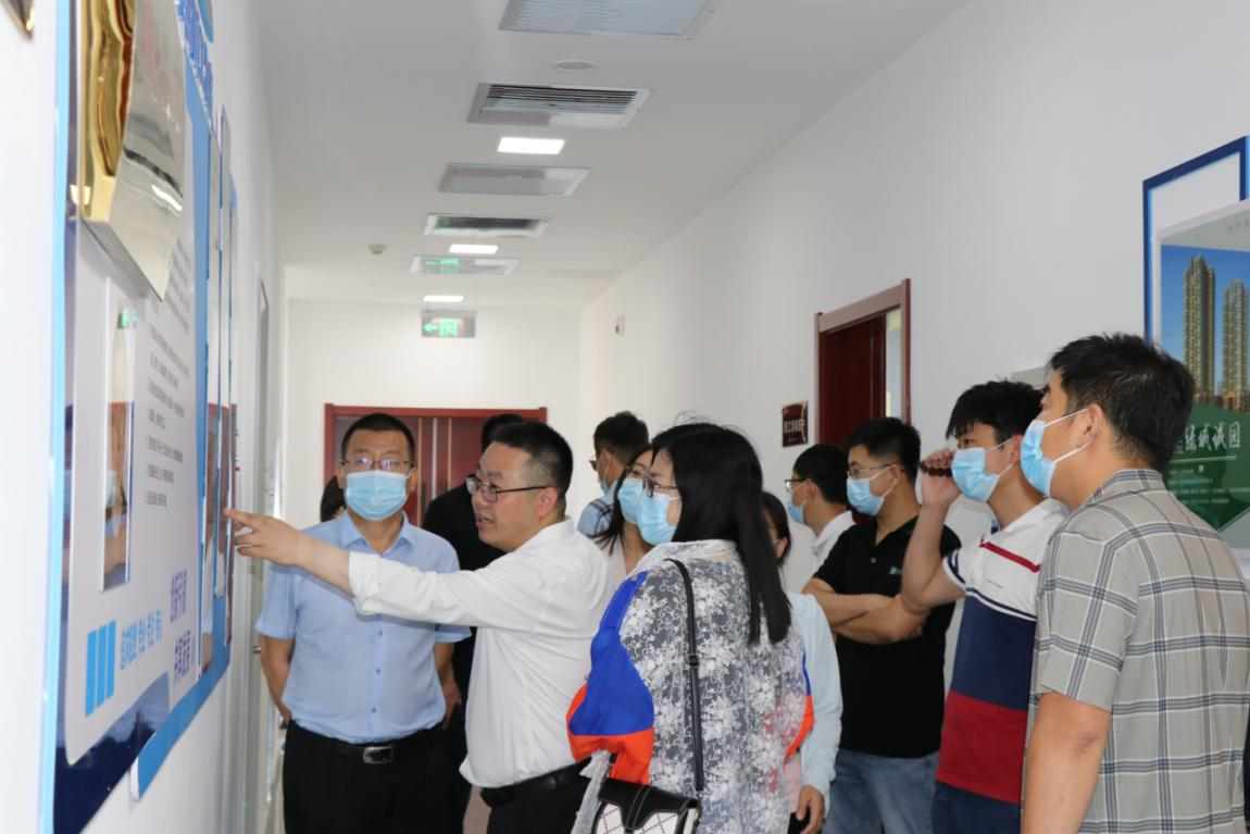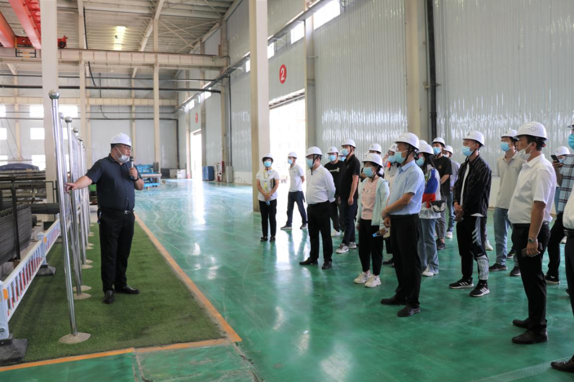 觀摩團(tuán)在副董事長王峰偉、總經(jīng)理王志巖的陪同講解下參觀了廠內(nèi)各類裝配式構(gòu)件、模具和鋼筋加工機(jī)械,詳細(xì)了解裝配式構(gòu)件的生產(chǎn)流水線,并參觀了公司辦公區(qū)企業(yè)文化建設(shè)。
