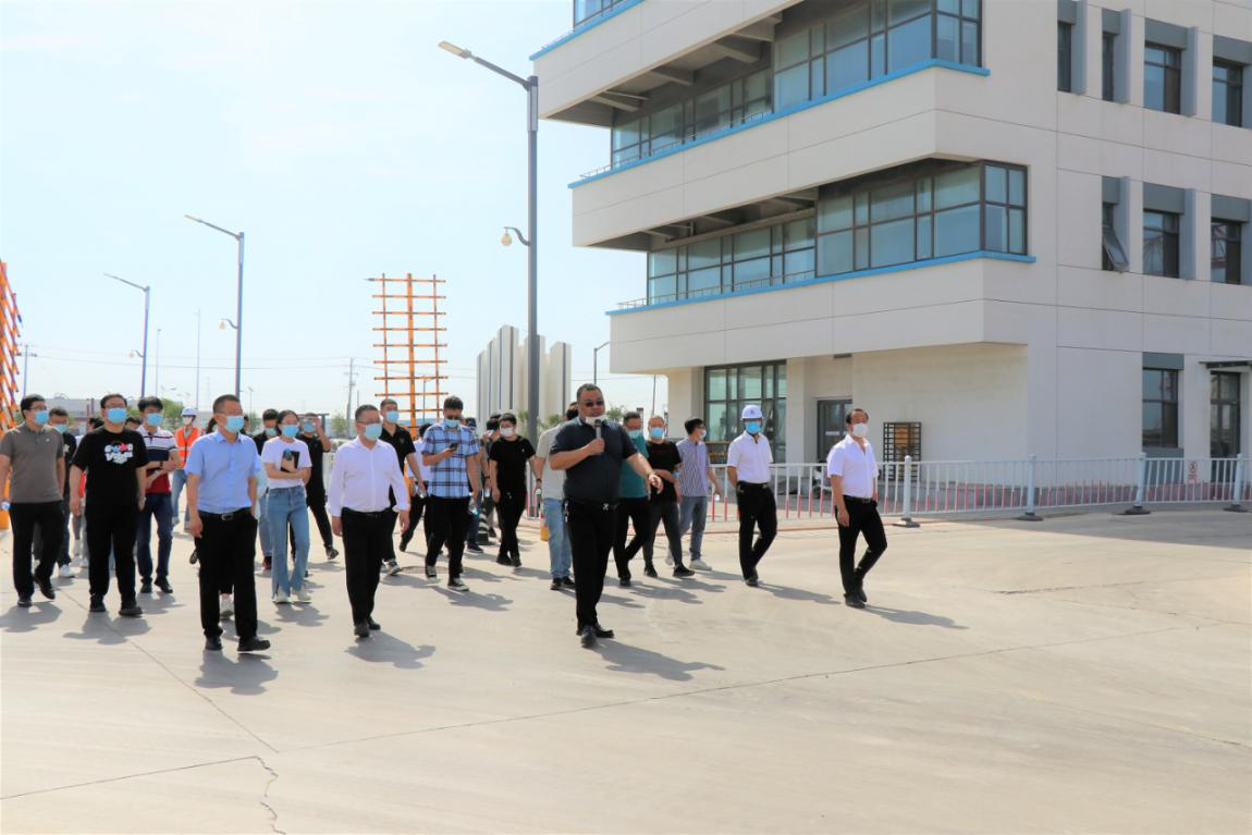 當(dāng)日上午,渤海新區(qū)住建局長于春雷、副局長宮國祥率40人的觀摩團(tuán)蒞臨中鐵滄鹽建筑科技有限公司進(jìn)行觀摩。中鐵滄鹽副董事長王峰偉、總經(jīng)理王志巖,總會(huì)計(jì)師李紅標(biāo)、副總經(jīng)理王新全、凌磊、副總工程師劉桂萍陪同觀摩。