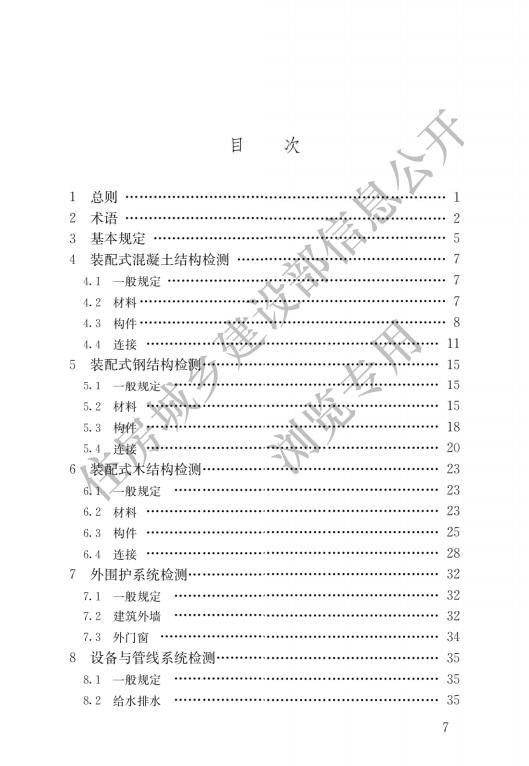 除總則、術(shù)語、基本規(guī)定外,標準還對裝配式混凝土結(jié)構(gòu)檢測、裝配式鋼結(jié)構(gòu)檢、裝配式木結(jié)構(gòu)檢測、外圍護系統(tǒng)檢測、設(shè)備與管線系統(tǒng)檢等作出了明確的規(guī)定。