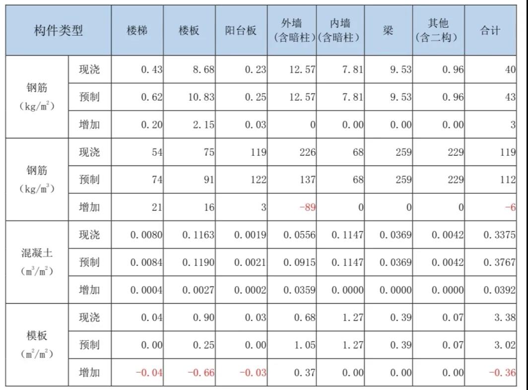 (2)各項(xiàng)目經(jīng)分析得出的增量分析結(jié)果可能有所不同,影響因素包括:①預(yù)制構(gòu)件應(yīng)用所占的比例;