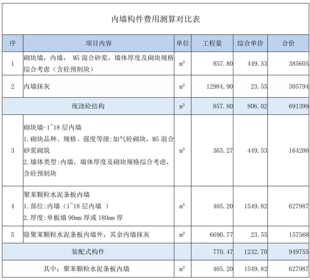 i預(yù)制內(nèi)墻單價(jià)比砌塊墻單價(jià)高;