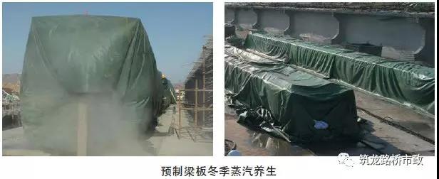 2) 預(yù)制梁(板)冬季養(yǎng)生。在拆完模后立即覆蓋阻燃篷布并采用鍋爐蒸汽進行養(yǎng)生。