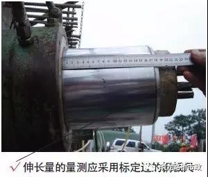 3) 張拉采用張拉力與伸長量雙控制的方法,不能直接量取千斤頂?shù)挠透鬃兾涣浚话悴捎脙啥藢ΨQ張拉,張拉計算公式按L實=L-L1+(L1'-L1)(L1張拉至20%ok(15%ok)時千斤頂?shù)幕钊L;L張拉至100%δk時千斤頂?shù)幕钊L;L1'張拉至40%δk(30%δk)時千斤頂?shù)幕钊L)。