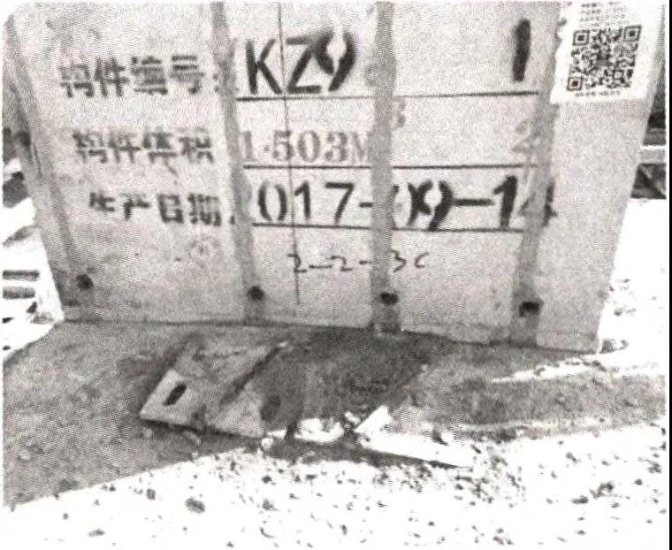 (2) 圖3中預埋接地連接板⑥設置在現澆層內,應滿足與樓板結構面平齊方能使上部預制構件落位后與附加專用導體②焊接。然而,在現場施工過程中預埋接地連接板⑥的安裝高度難把控,施工中接地連接板往往存在高出或低于結構面,當高出結構面時,其50mm的建筑面層無法將其完全隱蔽;當低于結構面時,必須通過鑿打結構面找出預埋接地連接板,而鑿打后的結構面坑坑洼洼存在質量缺陷問題。圖5、圖6為預埋接地連接板⑥在施工現場常見的質量問題照片。