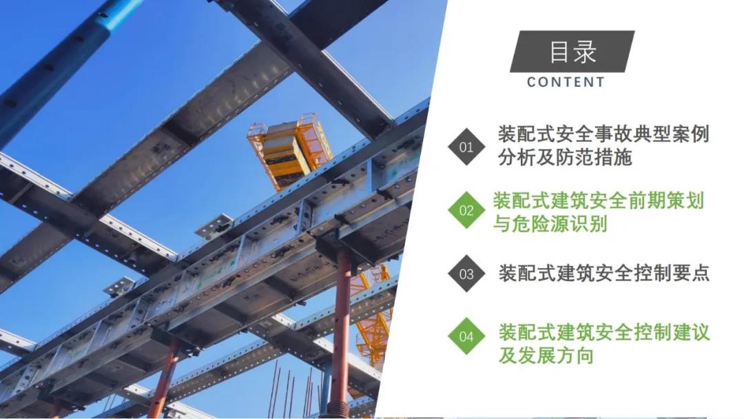來(lái)源:裝配式建筑2020年8月28日,“2020全國(guó)重大工程安全管理創(chuàng)新與事故防范經(jīng)驗(yàn)交流會(huì)”在北京召開(kāi)。中建一局集團(tuán)建設(shè)發(fā)展有限公司副總經(jīng)理李浩做“裝配式建筑施工安全風(fēng)險(xiǎn)控制及事故防范措施”的報(bào)告。通過(guò)分析裝配式建筑安全事故典型案例,從深化設(shè)計(jì)、生產(chǎn)運(yùn)輸、施工前準(zhǔn)備、現(xiàn)場(chǎng)施工4個(gè)階段提出安全控制要點(diǎn);指出安全前期策劃和危險(xiǎn)源識(shí)別的重要性;最后,提出裝配式建筑安全控制建議及發(fā)展方向。